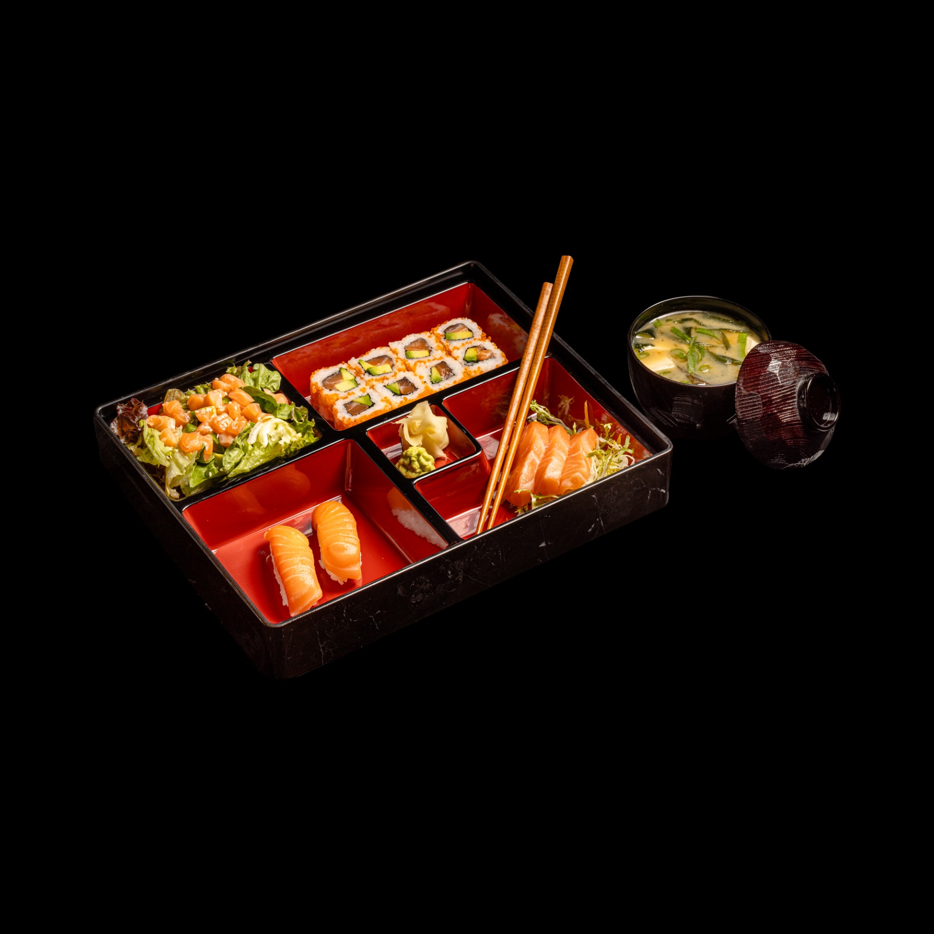 2 pieces of Salmon nigiri, 4 slices of Salmon Sashimi, 8 pieces