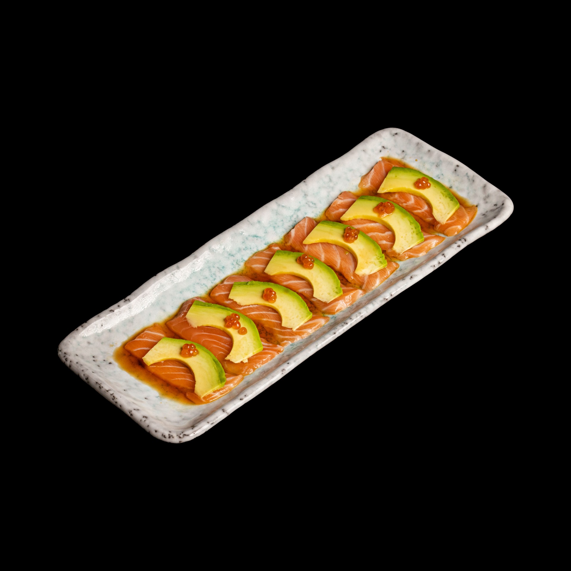 Slices of salmon and avocado topped with salmon ikura and served in our signature citrus vinegar sauce.