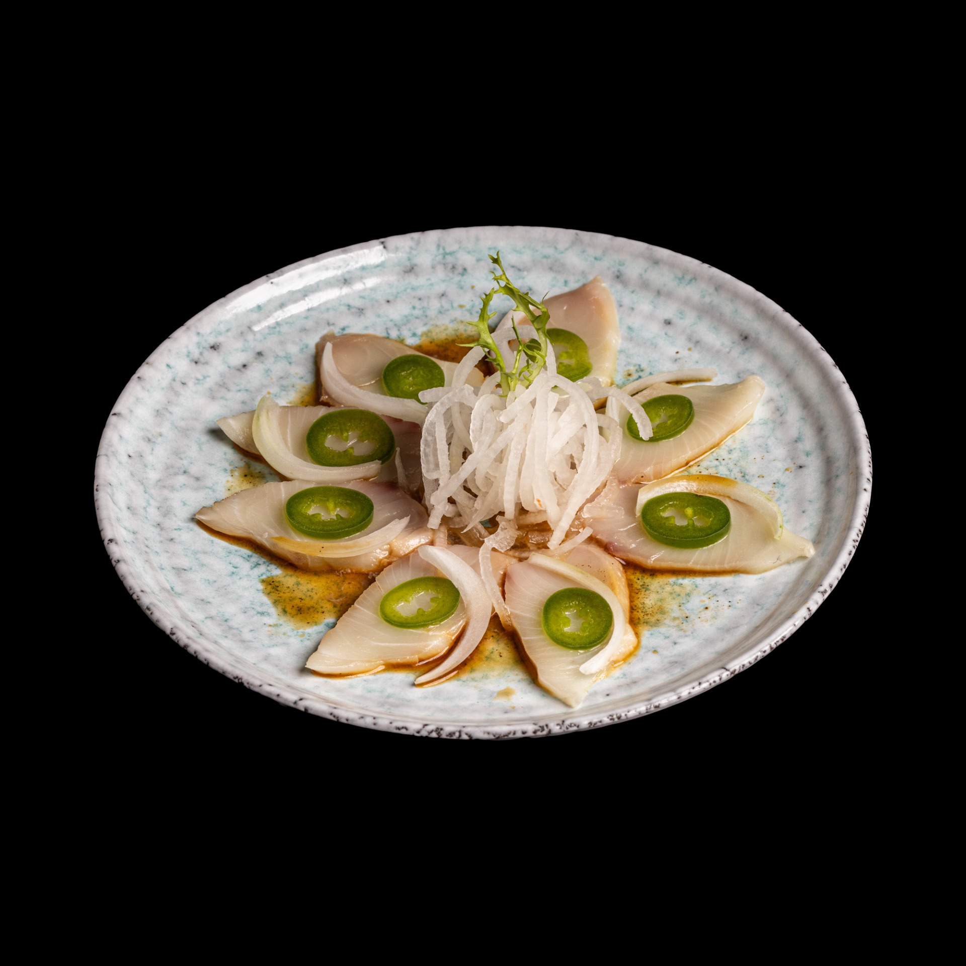 Slices of yellow tail topped with fresh jalapeno and white onion in our signature citrus vinegar sauce.