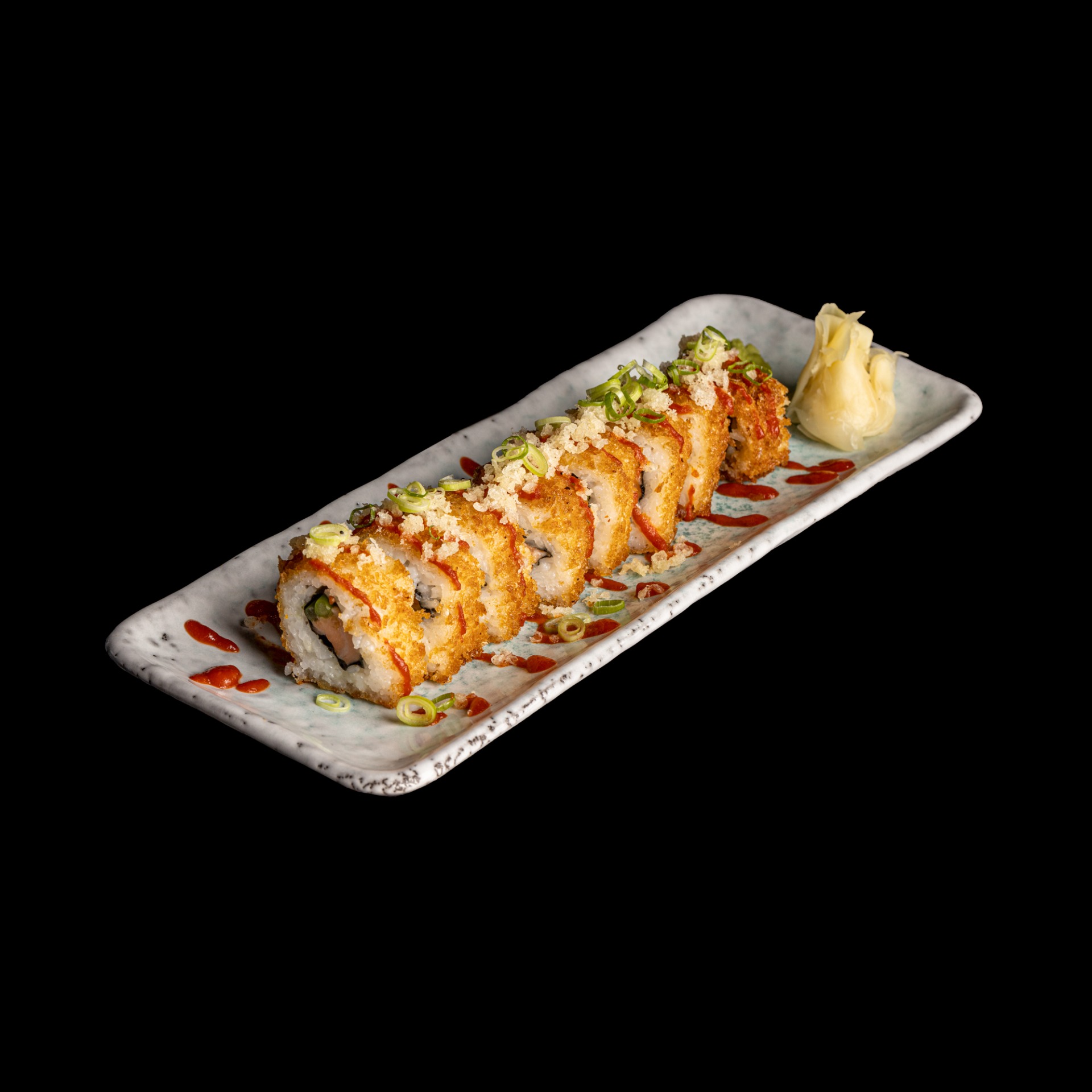 Fried shrimp tempura, crab stick, and cucumber topped crunchy spicy tempura, sweet chilli sauce and ponzu mayo.