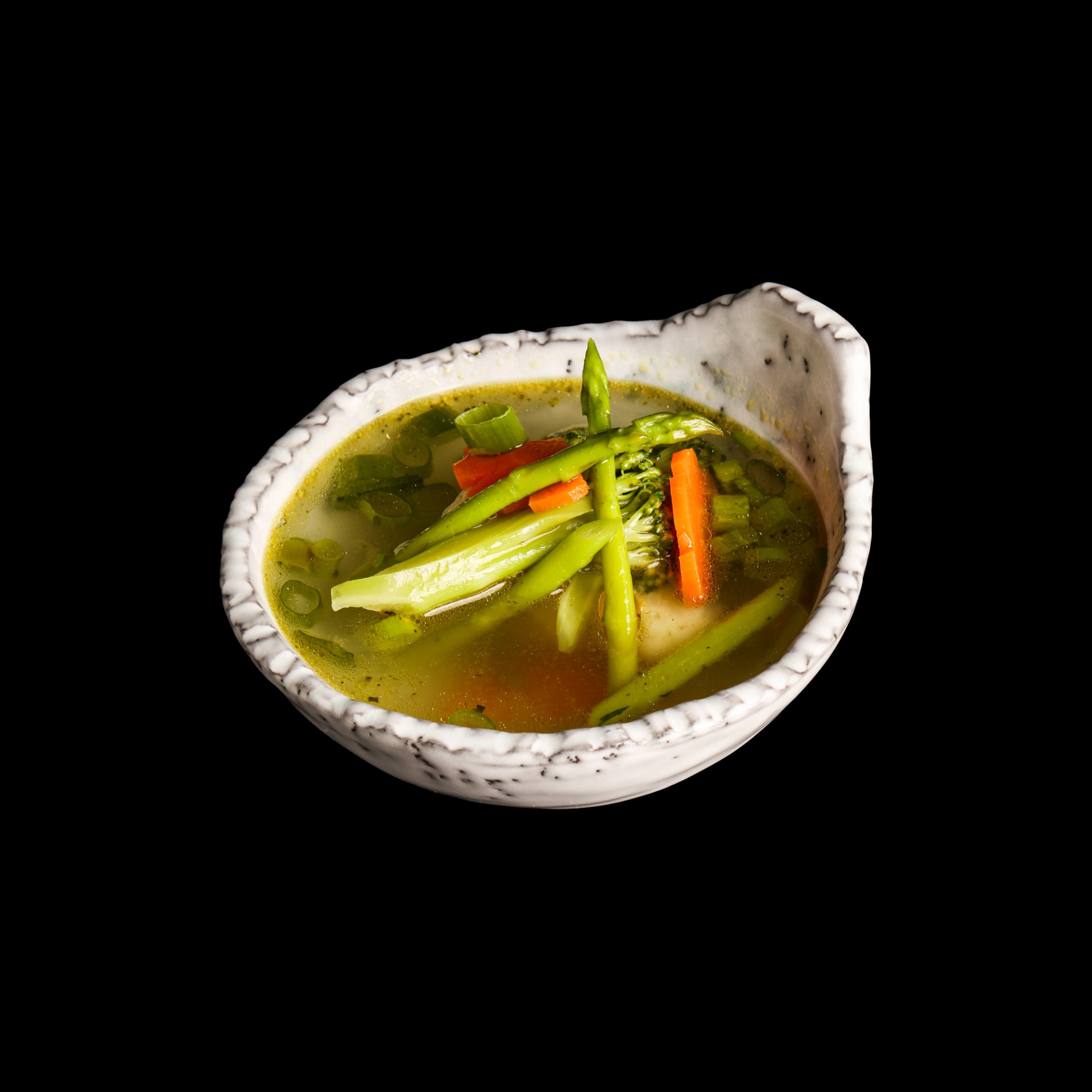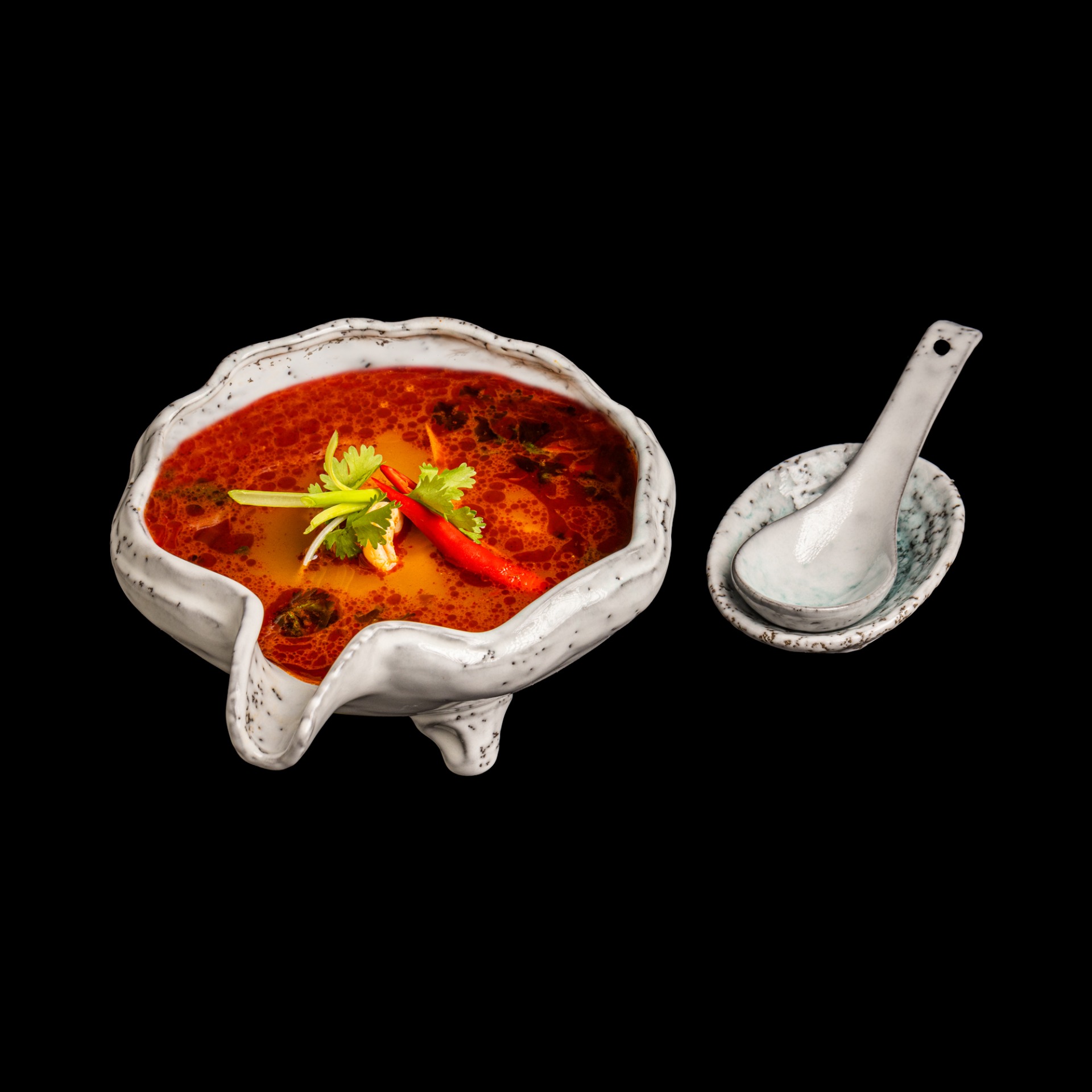 Thai style seafood mix of squid, yellow tail, shrimp in tom yam soup base with kaffir lime and lemon grass.
